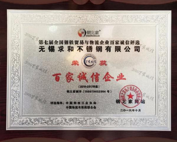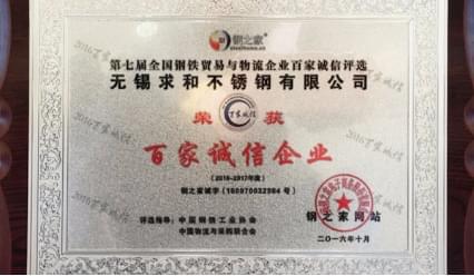 無(wú)錫求和不銹鋼有限公司是專業(yè)代理多家國(guó)內(nèi)外不銹鋼廠的各種不銹鋼板材,在不銹鋼行業(yè)享有很大的知名度且具有行業(yè)影響力的一級(jí)代理商,尤其是特種不銹鋼的經(jīng)銷和進(jìn)出口貿(mào)易。連續(xù)幾年被評(píng)為“中國(guó)不銹鋼流通企業(yè)AAAAA(高級(jí))級(jí)優(yōu)秀企業(yè)”、 “百家誠(chéng)信企業(yè)”、“無(wú)錫市3A級(jí)重合同守信用企業(yè)”,“中國(guó)不銹鋼行業(yè)貿(mào)易量前十名”。