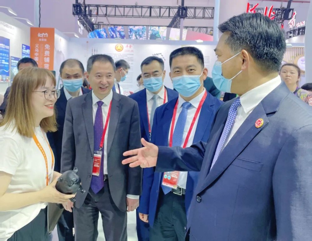 開幕式當天下午,商務部副部長盛秋平在浙江省商務廳副廳長陳志成等領導的陪同下,蒞臨浙江館參觀。
